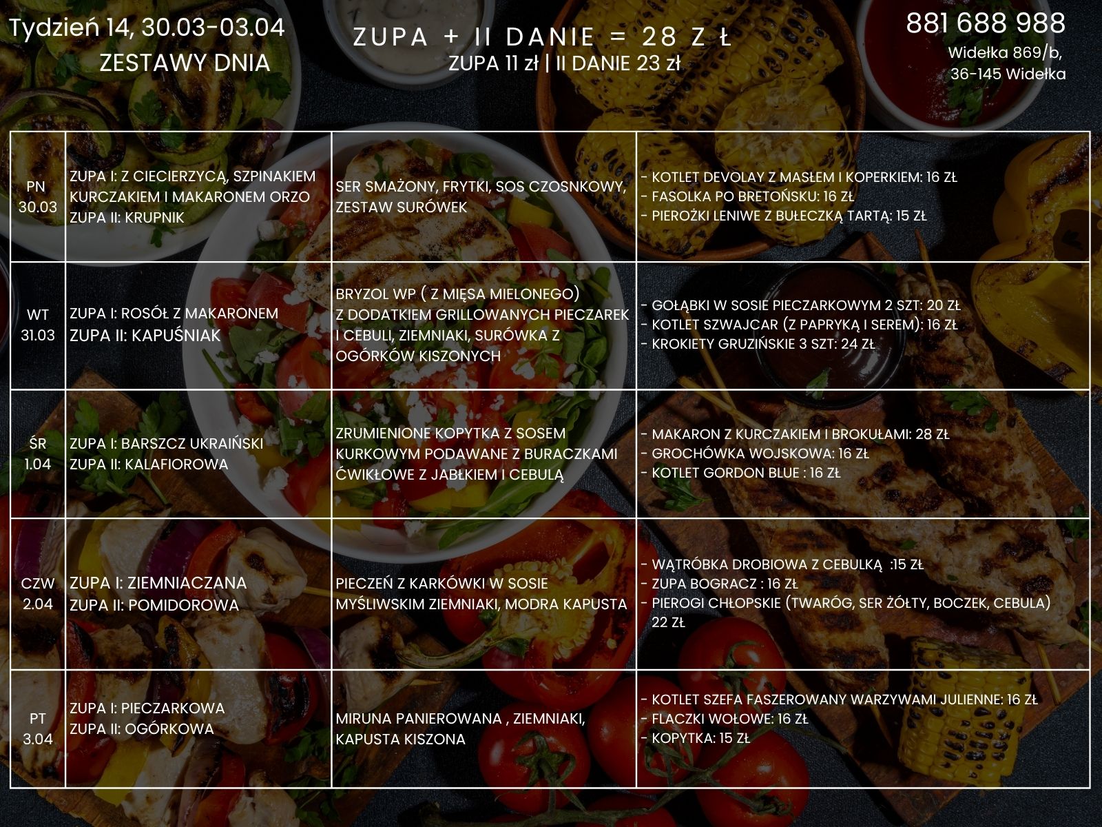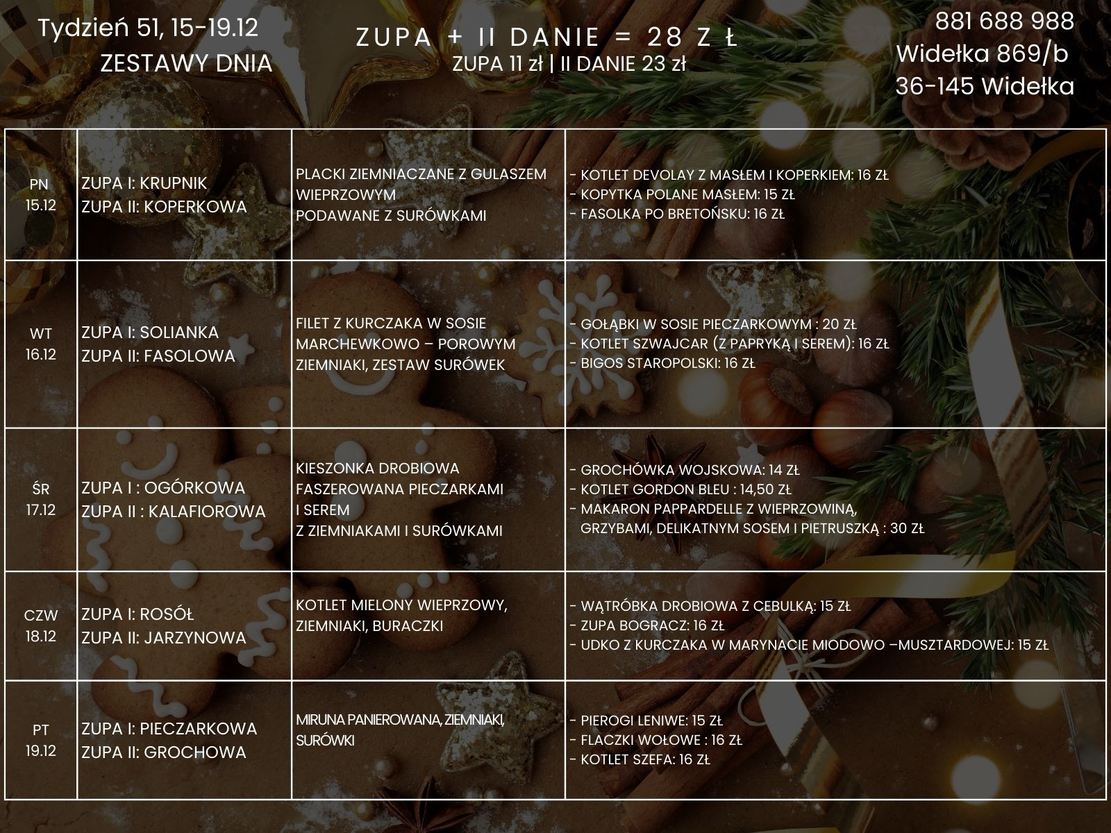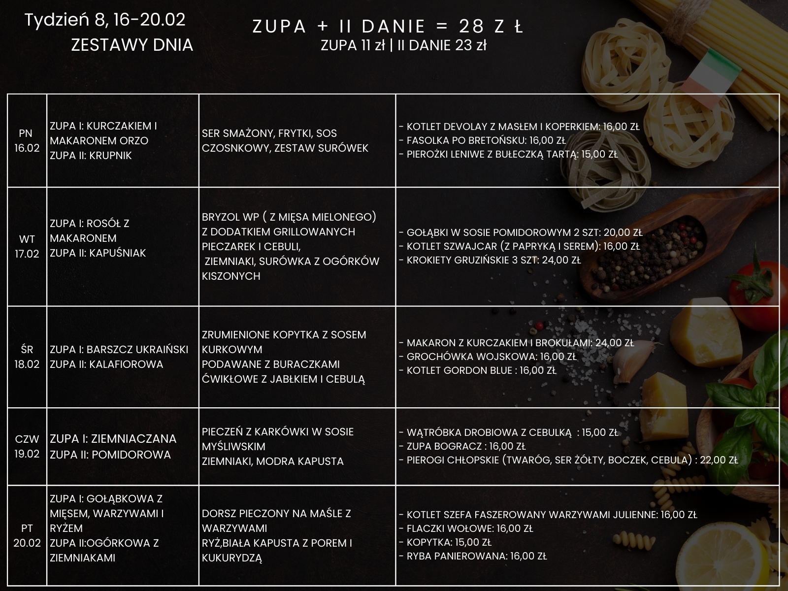 Codziennie inne zestawy dnia od poniedziałku do piątku.